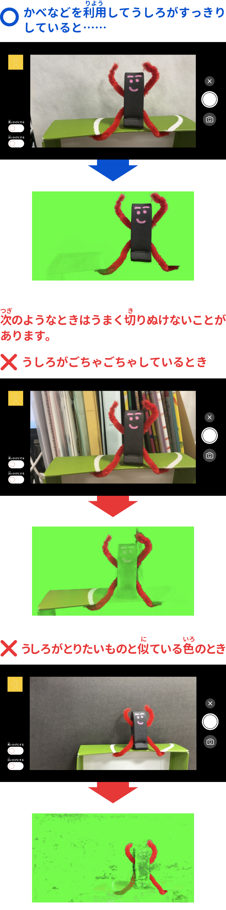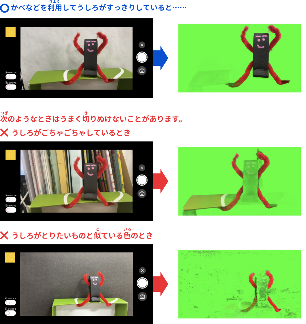 切りぬく写真をとるとき、とりたいものだけがはっきり分かるような場所で写すと、早くきれいに切りぬけるよ